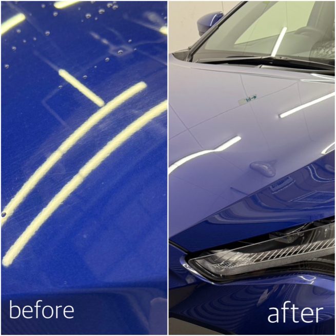 比較写真見て頂ければ嬉しいですが、新古車での施工のためボディーにうすーい傷が・・・💦